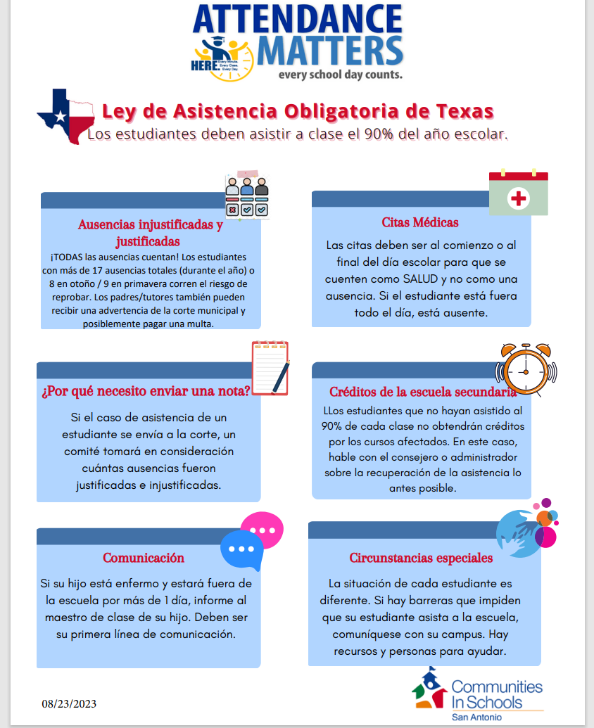 Health care notes can also be faxed from the doctor’s office to the Attendance Office at (210) 561-2000.
