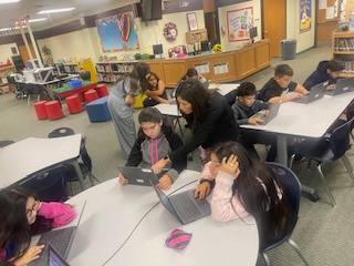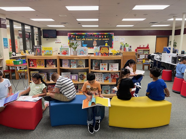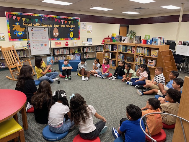 The goal of the Principal's Book Club is to create a culture of reading on campus and build strong classroom libraries. Mrs. Carrasco and Mrs. Alaniz deliver a new book each month to every classroom. After listening to their teacher read the book, students are encouraged to respond to the book and display their work on the campus book club bulletin board.