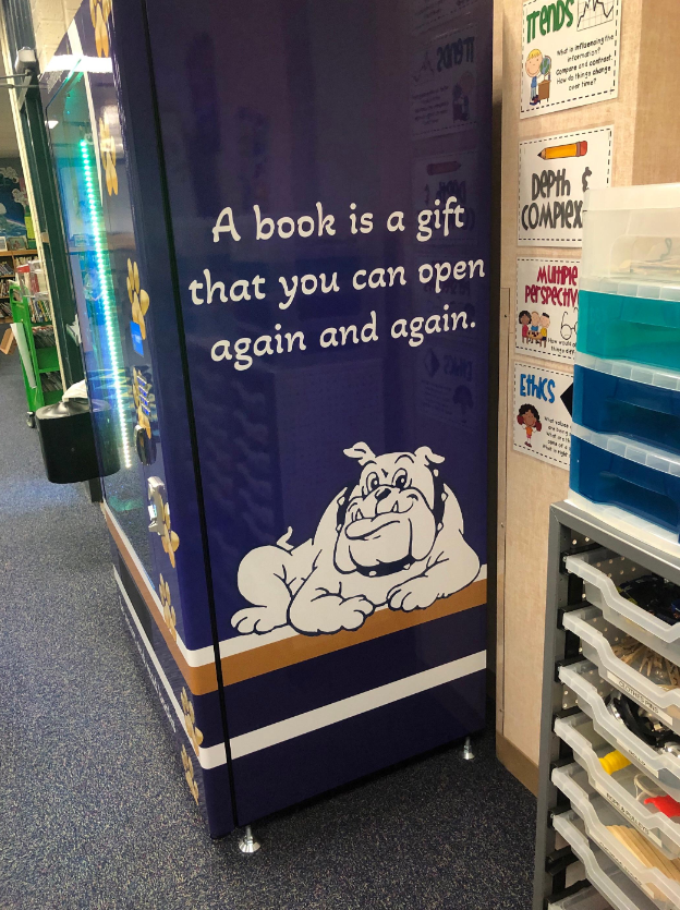 These kids will also get a golden coin to purchase a book from our vending machine.