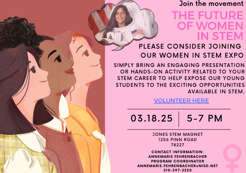 In celebration of Womenโs Month, we are thrilled to announce our first-ever Women in STEM Expo, scheduled to take place at Jones STEM on March 18, 2025, from 5:00 PM to 7:00 PM. This event will bring together students from across the district to explore various exciting STEM careers and learn from outstanding women who have made significant contributions to these fields.