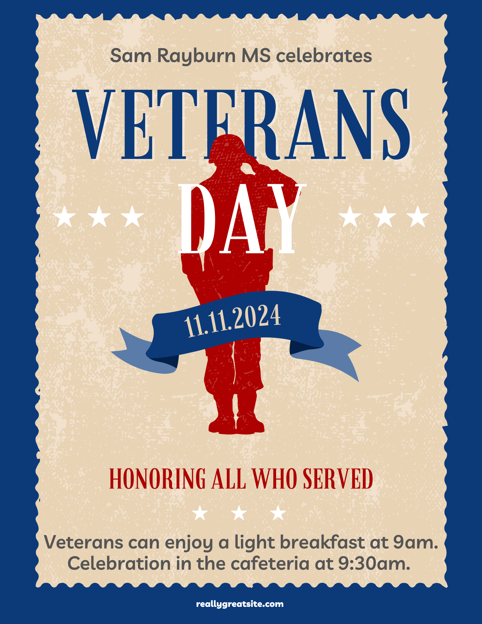 Come and honor Veterans at the 2024 Rayburn Veteran's Day Ceremony with a guest speaker.