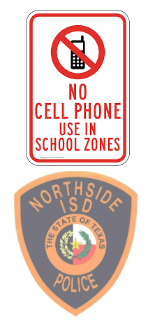 Remember that the use of cell phones while in the school zone is prohibited by Texas Transportation Code 545.425 Use of Wireless Communication Device in a School Crossing Zone or While Operating a Bus With a Minor Passenger; Local Authority Sign Requirements.