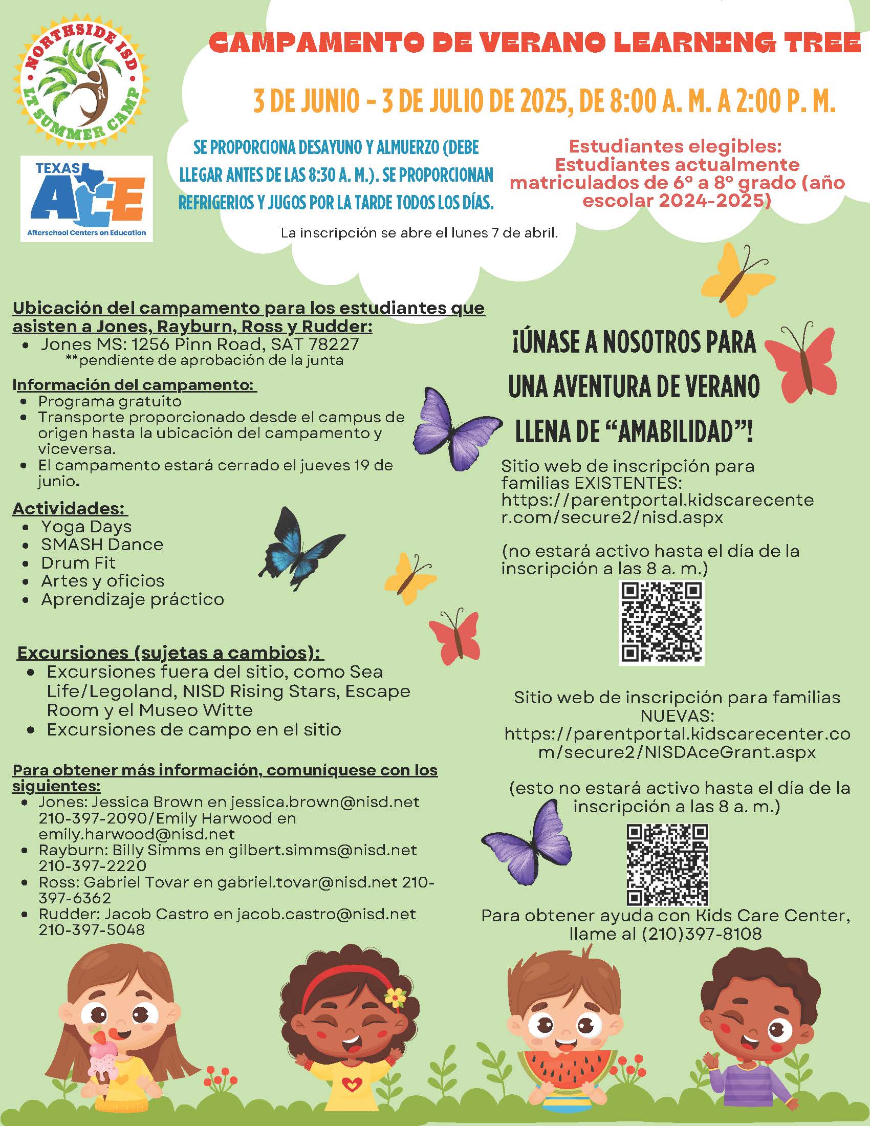 Learning Tree is offering a free summer camp for current Rayburn students. Please open the attachment for a flyer with all of the information. For questions, please call Mr. Simms at 397-2220.