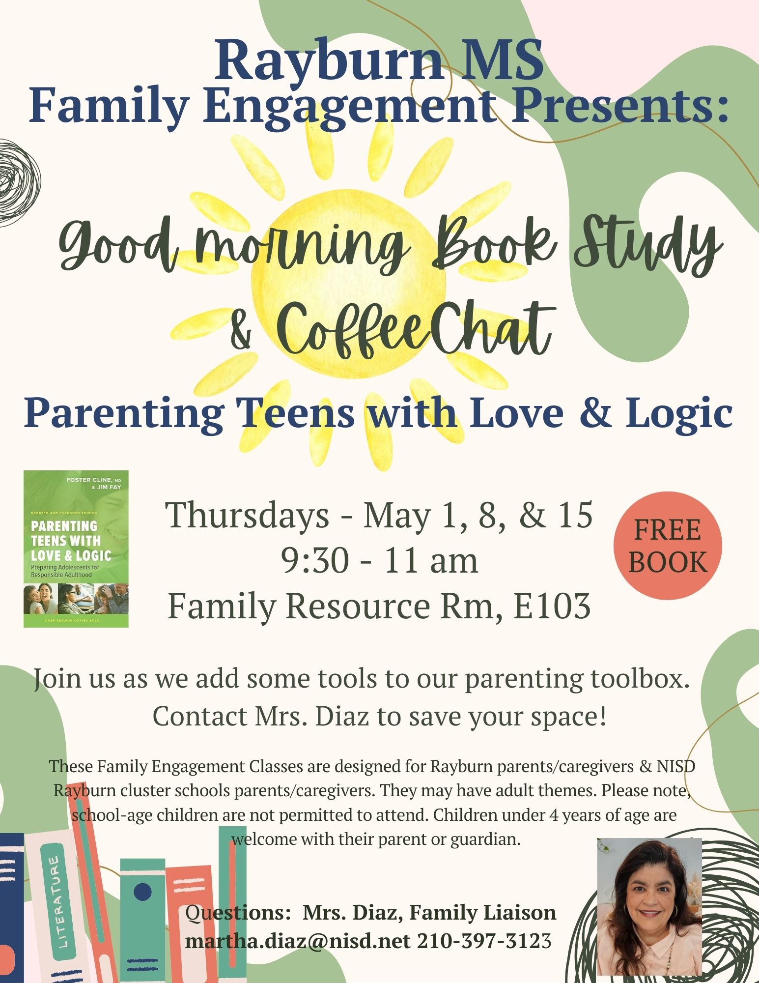 Parents & Caregivers - You are invited to take part in our 3 session book study on May 1, 8, & 15 at 9:30 am. Join us and connect with other parents as we learn and grow together. We will be studying the book "Parenting Teens with Love & Logic." Arrive at the first session to assure you receive a free book! We can't wait to see you!