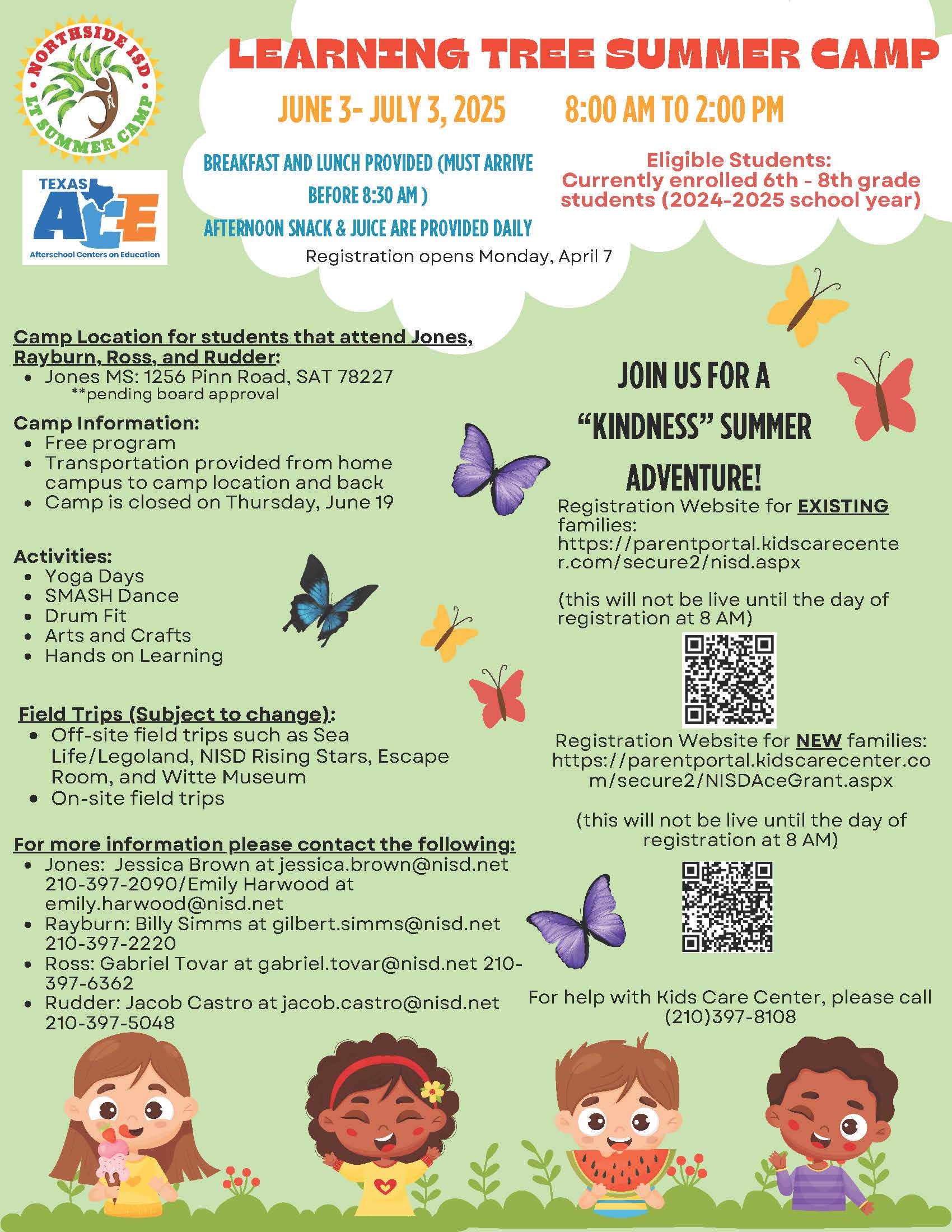 Learning Tree is offering a free summer camp for current Rayburn students. Please open the attachment for a flyer with all of the information. For questions, please call Mr. Simms at 397-2220.